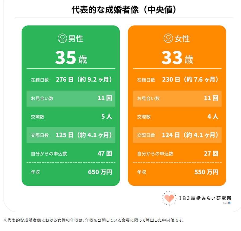 それは、結婚を決めた人たちの「お見合い回数:11回」と「交際日数:約4ヶ月(124〜125日)」が、