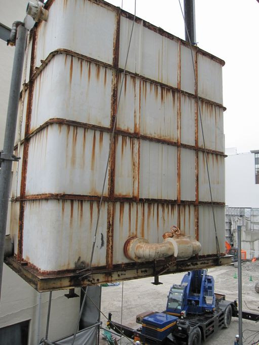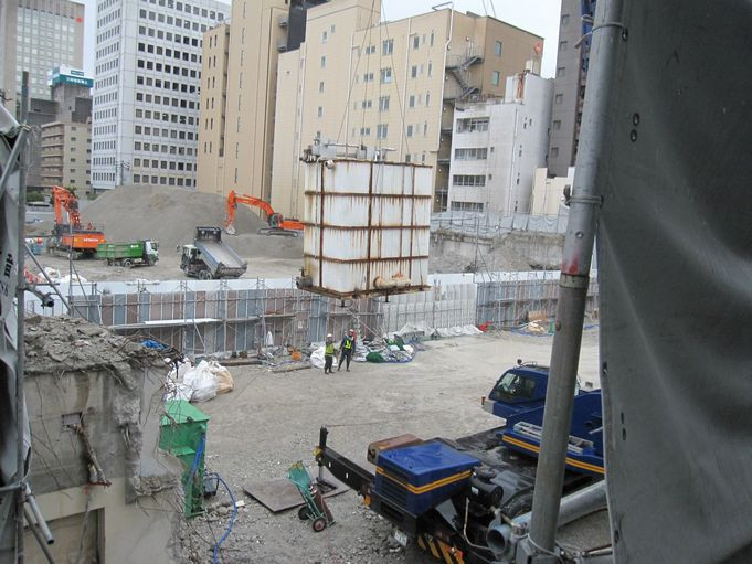 ビブレのタンク撤去作業。 2019/06/15 岡山の結婚相談所JM岡山の隣にあったビブレA館のタンク撤去を行います。 ワイヤーを掛けてクレーン車で釣り上げます。 傍でみると大きくて10トン以上はありそうです。 クレーン車はそれを軽々と吊り上げます。 あっという間に持ち去られた感じ そしてビブレの跡地でしばし休憩のようです。 さすが、クレーン車は人間が出来ないことをいとも簡単にやってのけます。