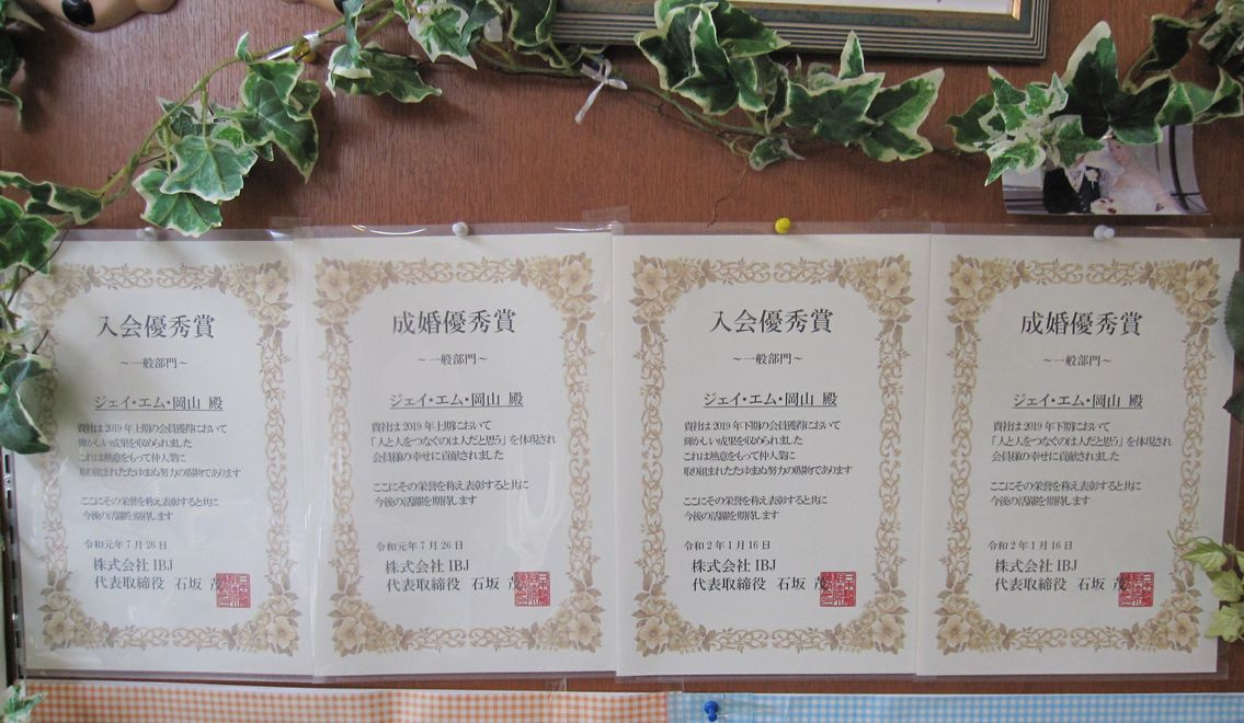 2019年下期も「入会優秀賞」「成婚優秀賞」頂きました!(^^♪