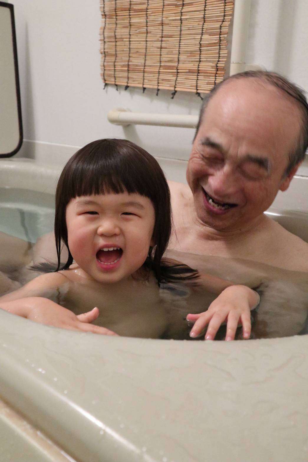 孫娘と一緒にお風呂♬ 2021/02/16 孫娘と一緒にお風呂♬ 娘が次女を出産して約1カ月 産後しばらく実家暮らしをしていますが 産後1カ月程度は入浴出来ないとあって 孫娘はずっとお爺さんと風呂に入っていました♬ これが結構楽しい(^^♪ その娘が今日産後1カ月検診で入浴許可が出た 今日から孫娘はママと一緒に風呂に入ることになる。 やれやれとチョッピリ残念が同居(^^) 爺爺はもうこの孫娘と一緒に風呂に入ることは無いかもしれないので 昨日記念に1枚撮ってもらった(^^♪