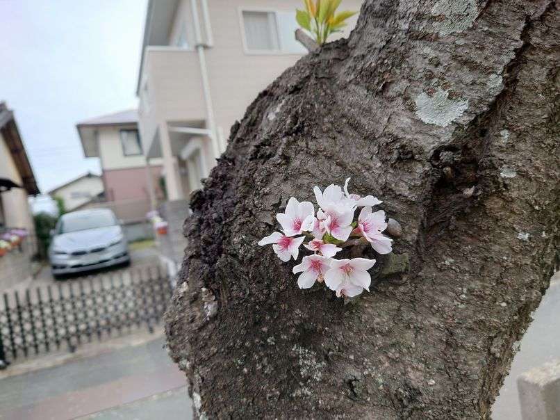 写真はご近所さんの桜の幹に直接咲いてる桜の花です!