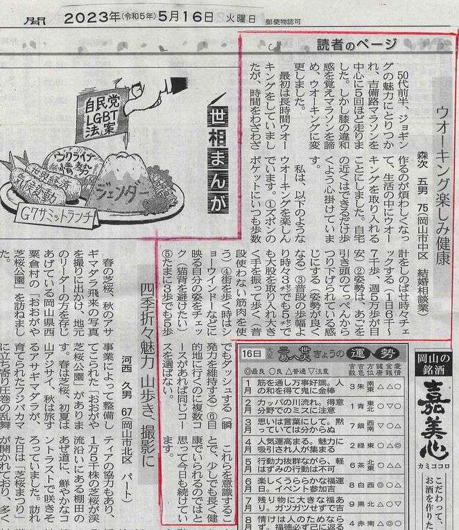 昨日はウオーキングで掲載して頂きました。